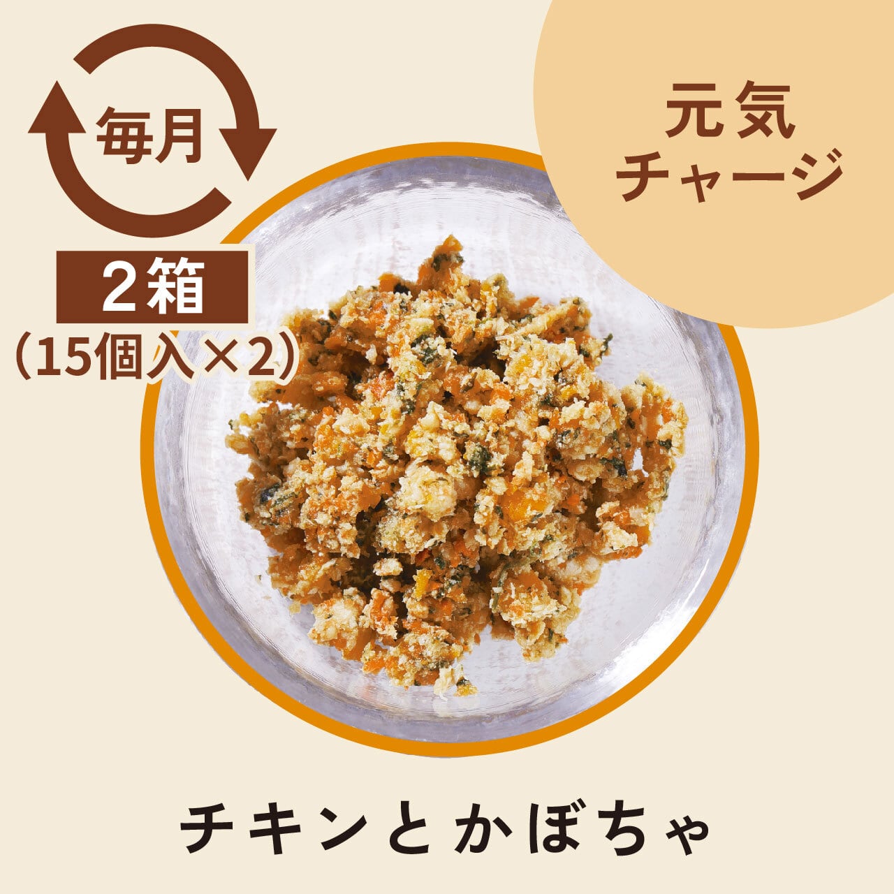 原材料:鶏肉、人参、かぼちゃ、おから、ベビーリーフ、クコの実