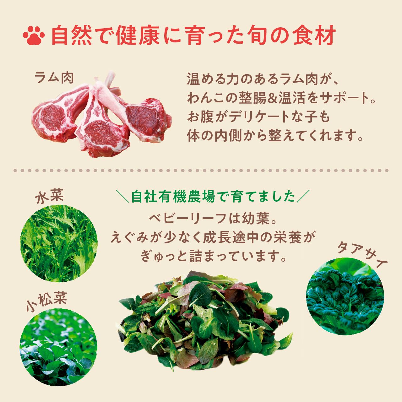 原材料:おから、人参、ラム肉、舞茸、ベビーリーフ、クコの実