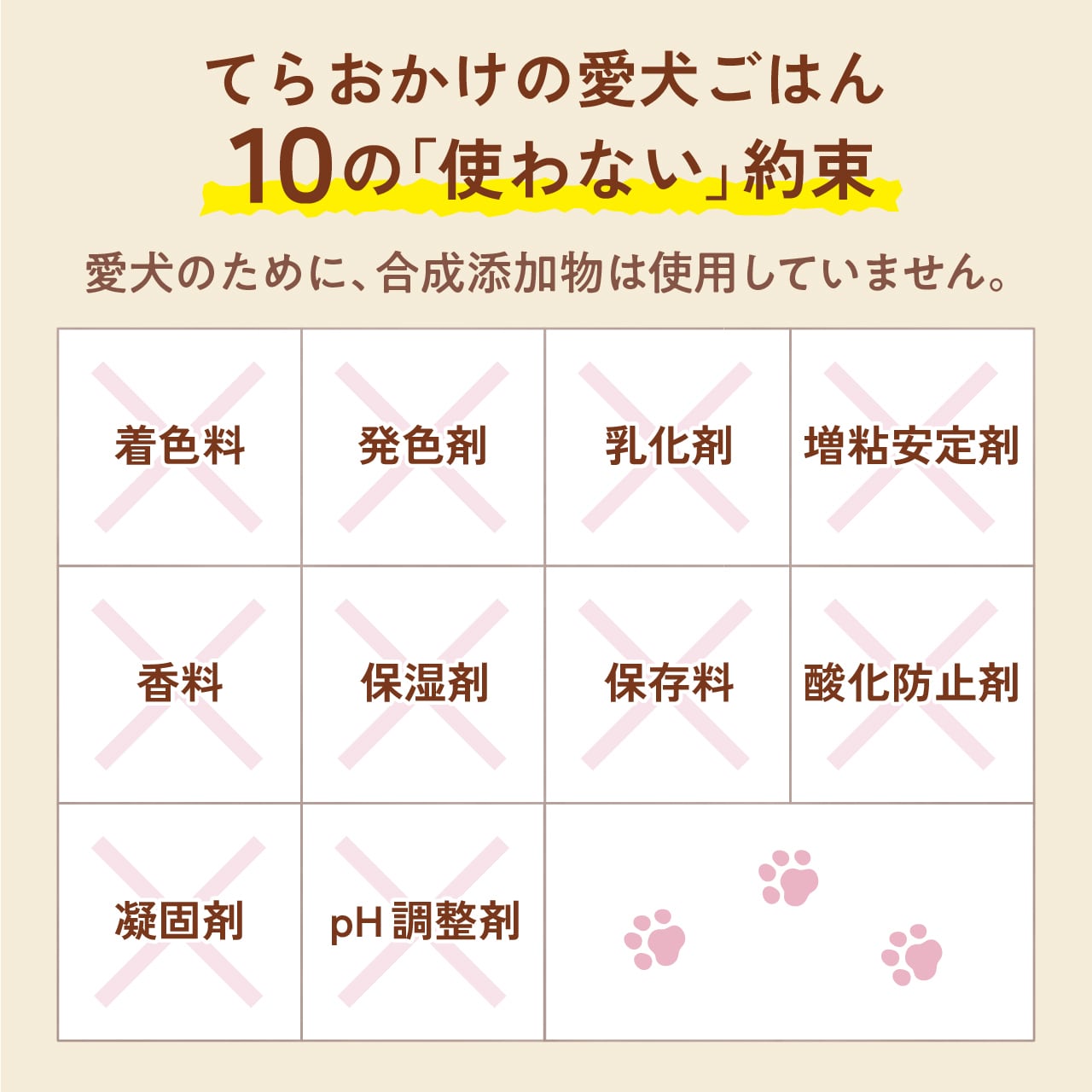 万が一、ご注文の製品と到着した製品が異なっている場合や、破損した製品が届いた場合は、製品の交換対応をさせていただきますので、お手数ですが製品到着後7日以内に、てらおかけの愛犬ごはんお客様サポート([email protected]) までご連絡いただきますようお願いいたします。