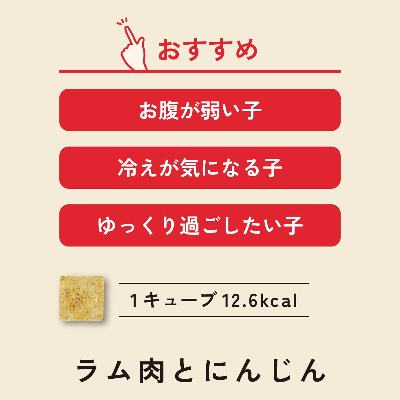 原材料:おから、にんじん、ラム肉、まいたけ、ベビーリーフ、クコの実