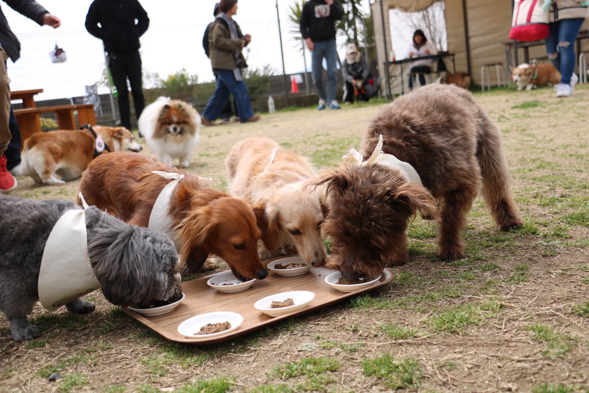 試食会では、多くのわんちゃんが夢中で食べてくれました。